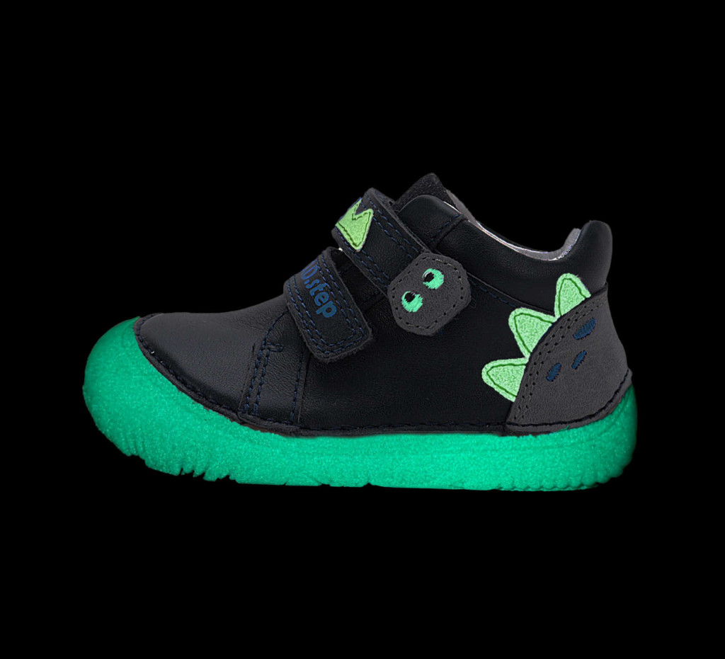 Ez a vagány fekete D.D.Step barefoot fiú cipő nemcsak szuper kényelmes, hanem igazán játékos kiegészítője a kisfiúk ruhatárának. A dinoszaurusz mintás részletek és a zölden világító talp egyedivé és különlegessé teszik – a gyerekek egyszerűen imádni fogják!